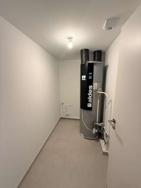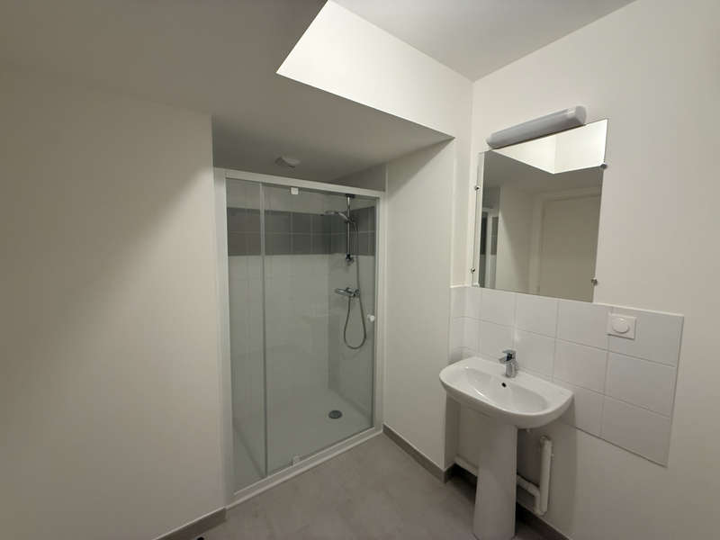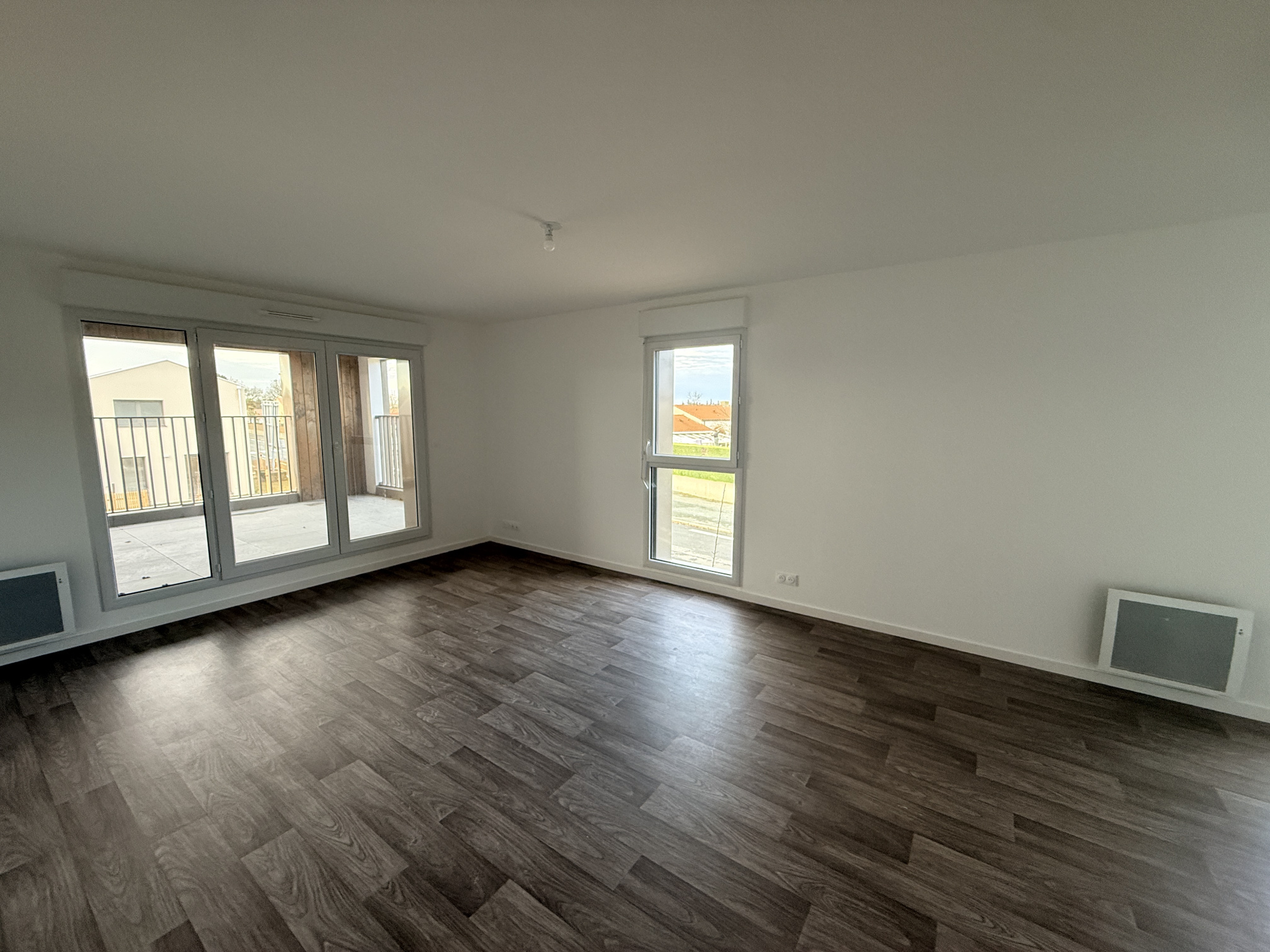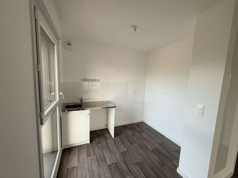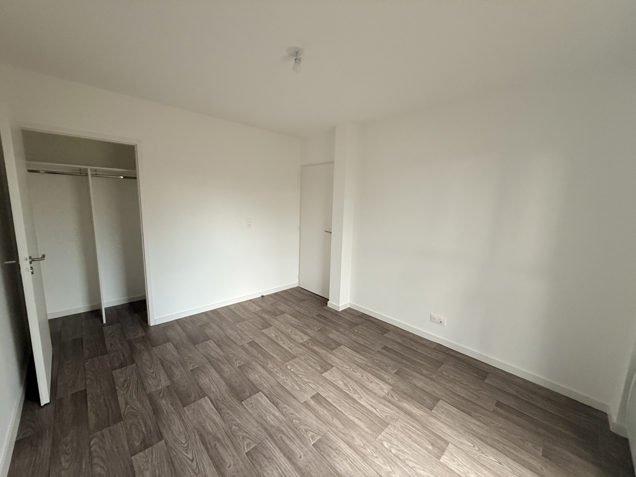 Appartement de type 3, situé au 1er étage, offrant : entrée, wc, pièce de vie avec cuisine ouverte, dégagement avec placard desservant cellier, 2 chambres, salle d'eau.
