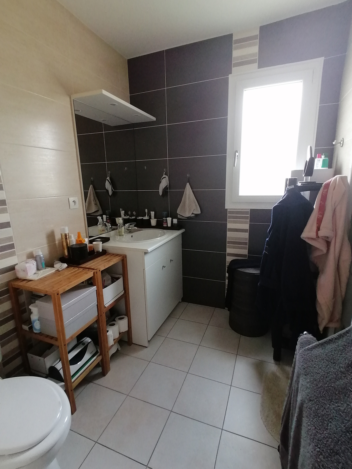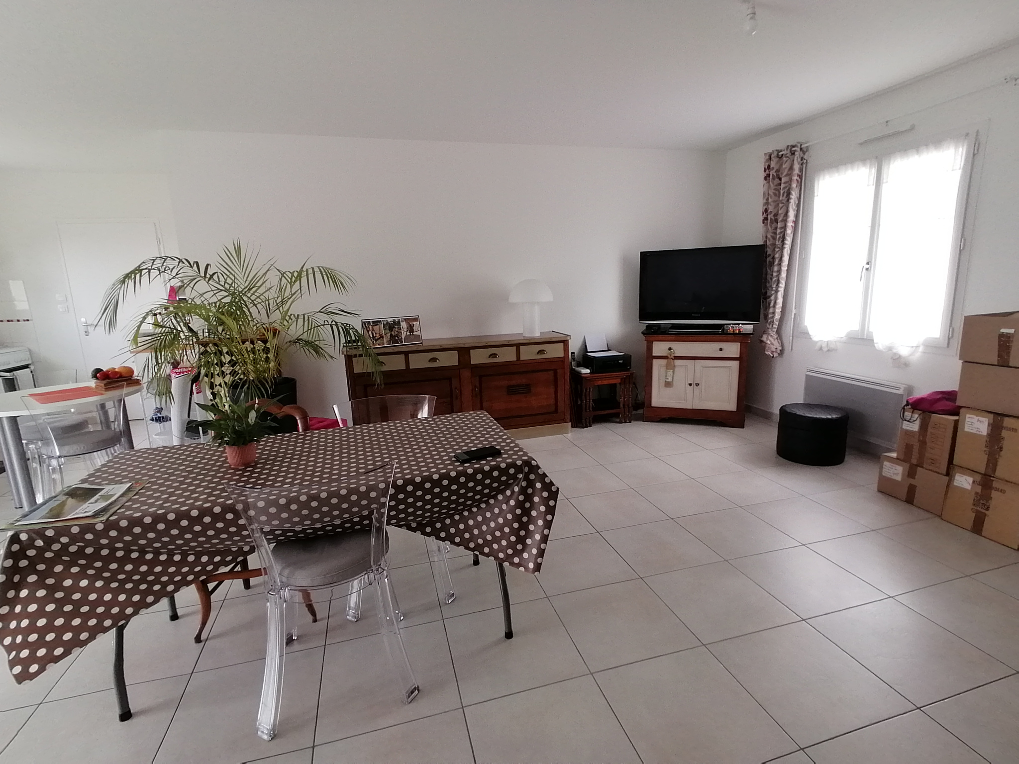 Entrée, séjour-salon avec cuisine ouverte, 2 chambres, salle d'eau, wc, lingerie