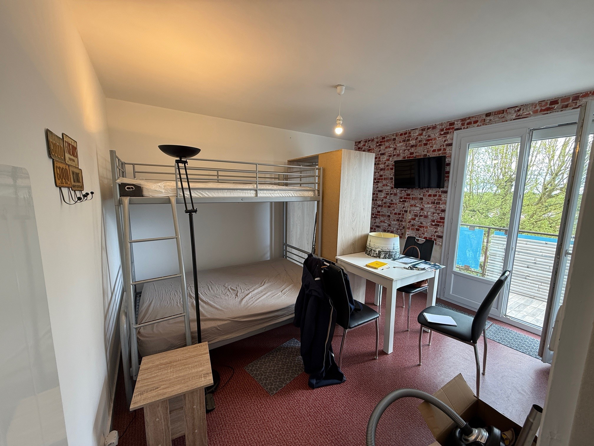 Studio meublé, situé au 4ème étage, offrant : entrée, salon avec lit, armoire, table et chaises, cuisine aménagée et équipée (plaque de cuisson, réfrigérateur, micro-ondes), bar avec 2 tabourets, salle d'eau avec wc comprenant un lave-linge.