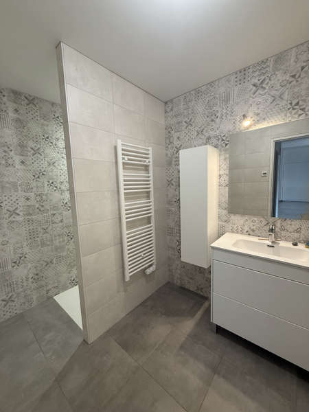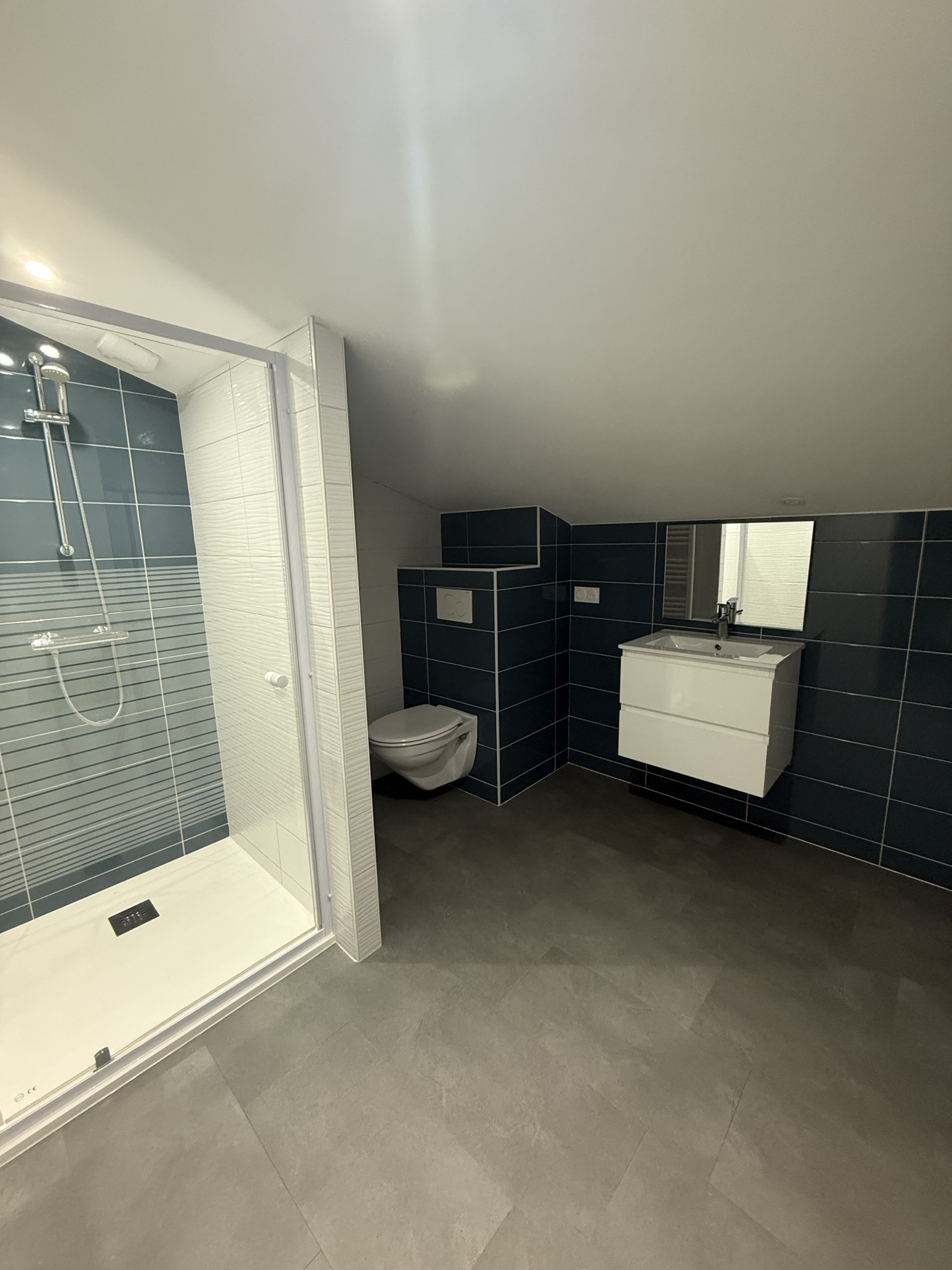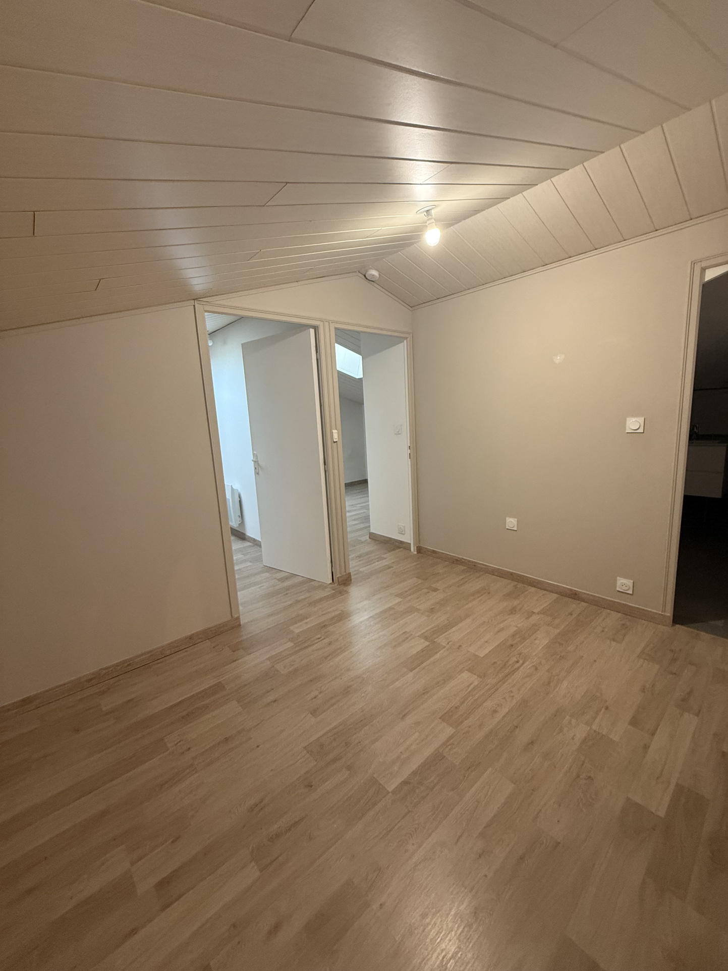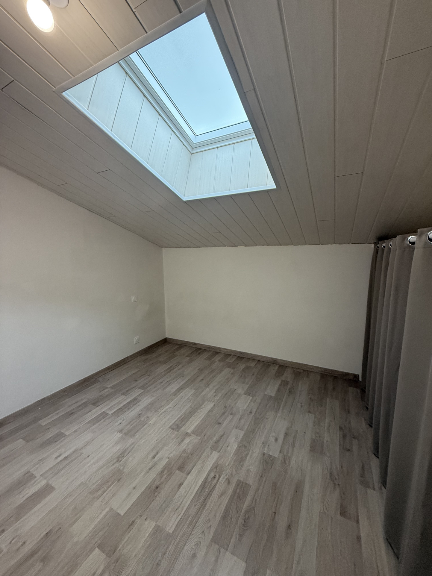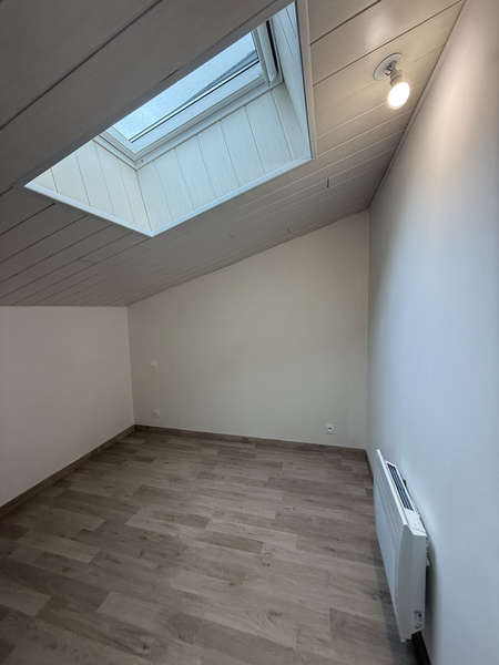 A l'étage : palier desservant 2 chambres dont 1 placard & salle d'eau avec wc