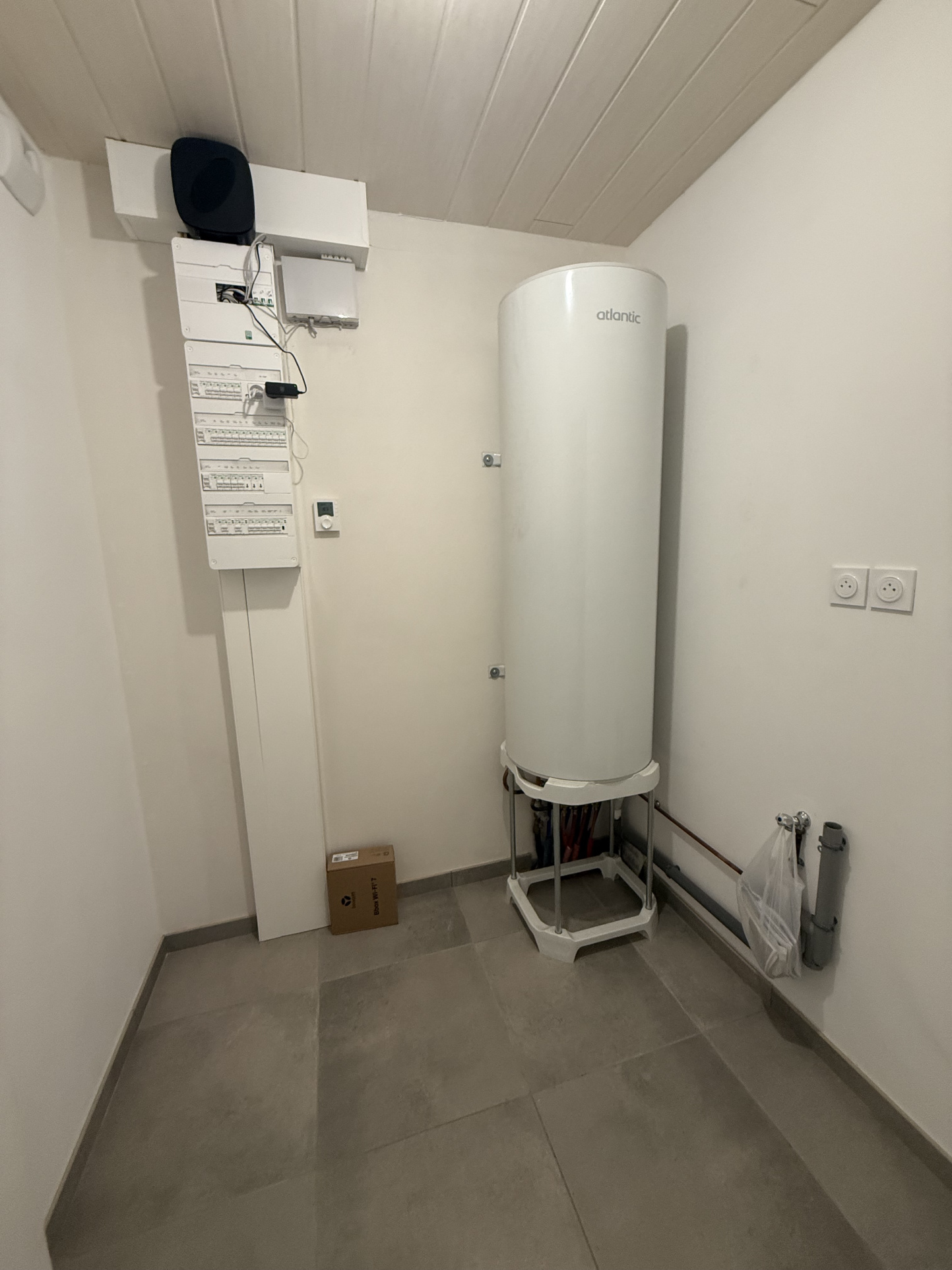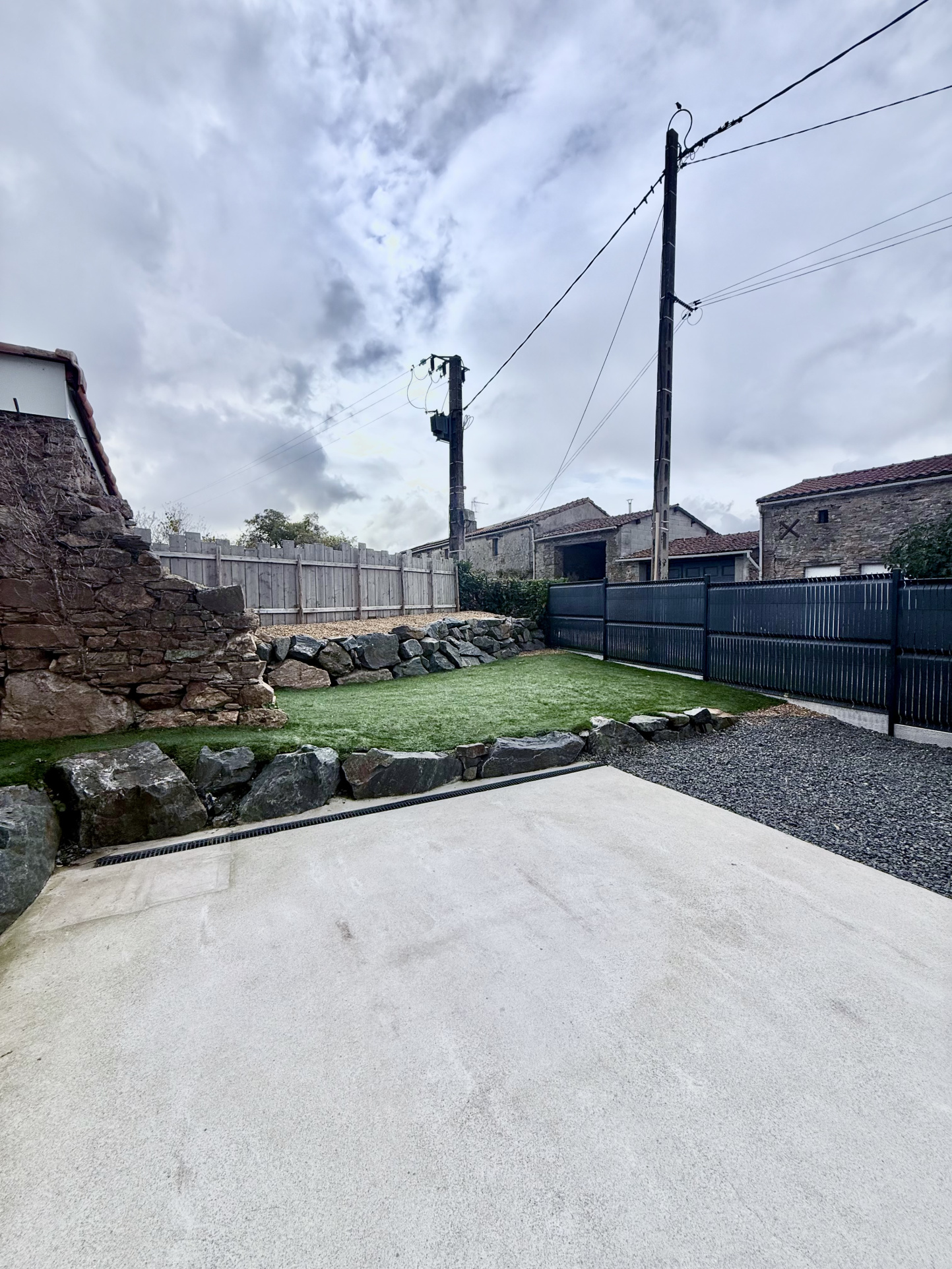 En annexe : préau ouvert (2 places), local de rangement & jardin d'environ 80 m2 (pelouse synthétique)