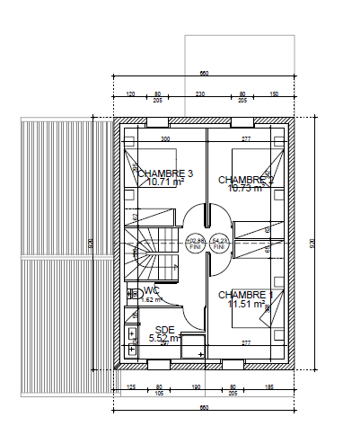 - A l'étage : dégagement desservant 3 chambres avec placard, salle d'eau & wc