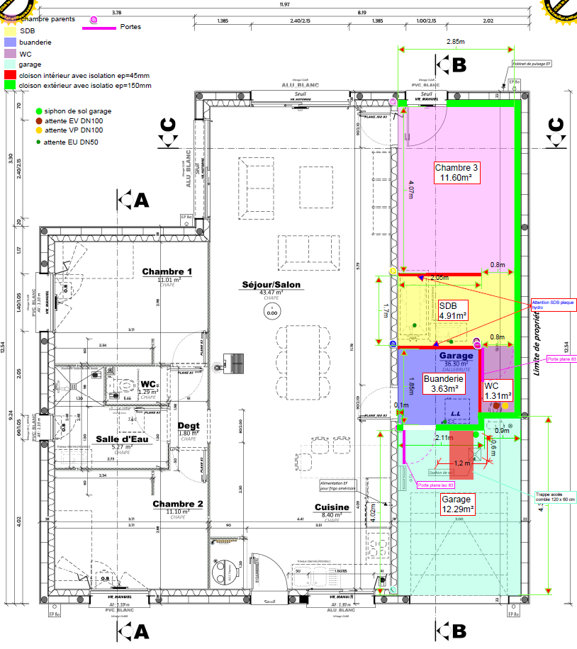 Maison de plain-pied de type 4, comprenant :