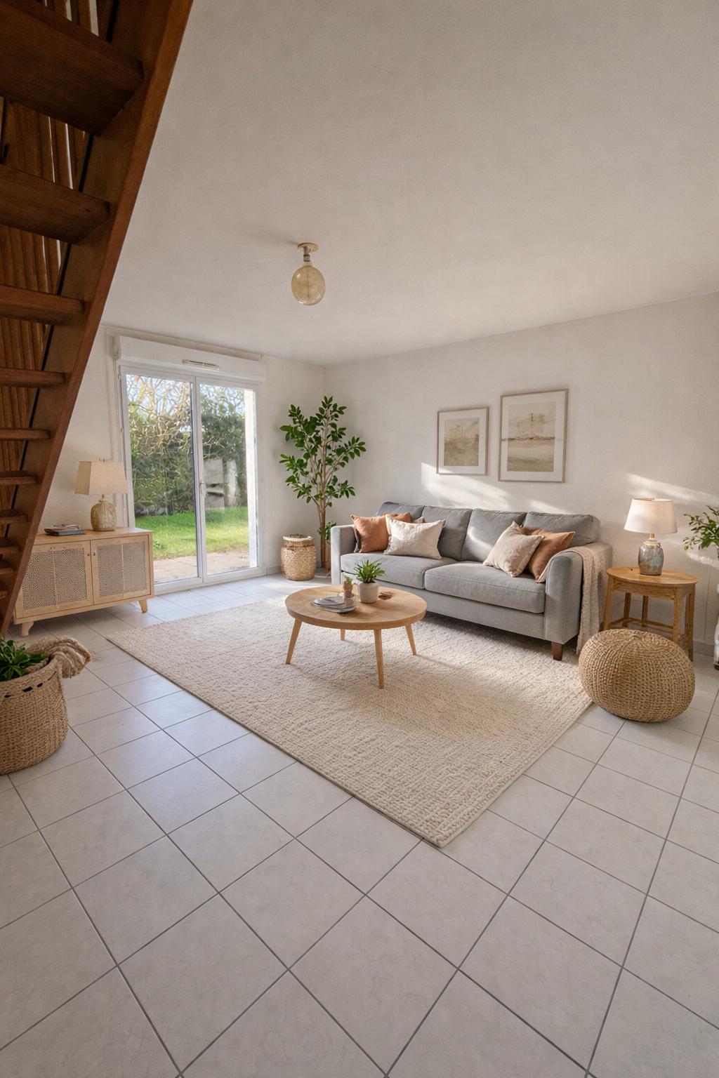 - Au rez-de-chaussée : entrée sur pièce de vie, cuisine, wc, rangements.