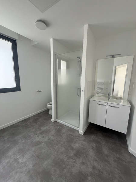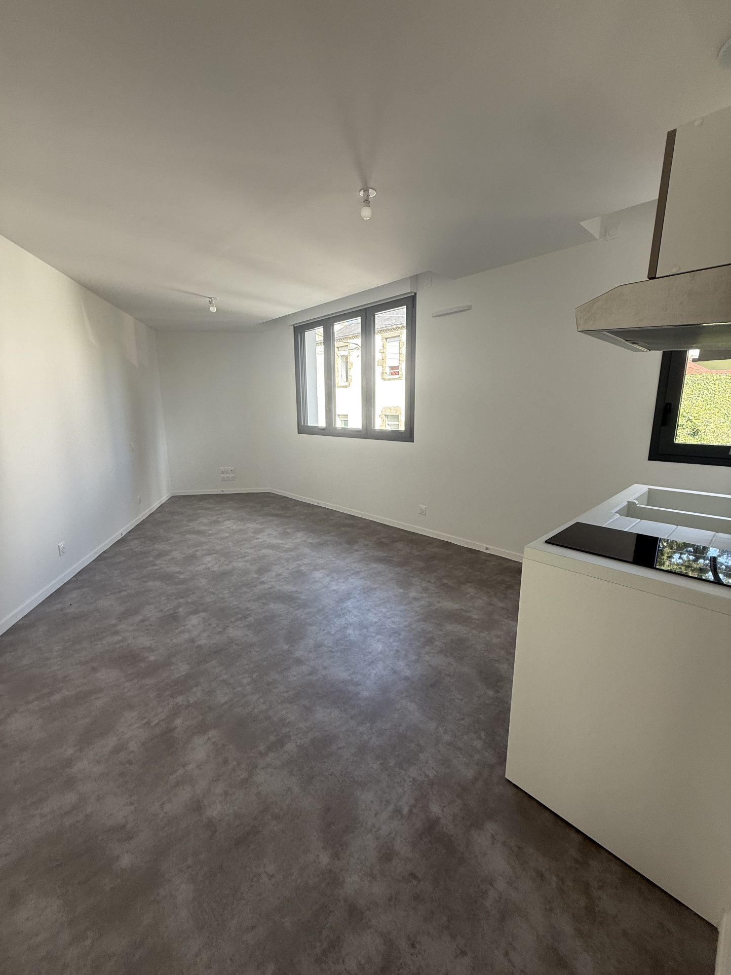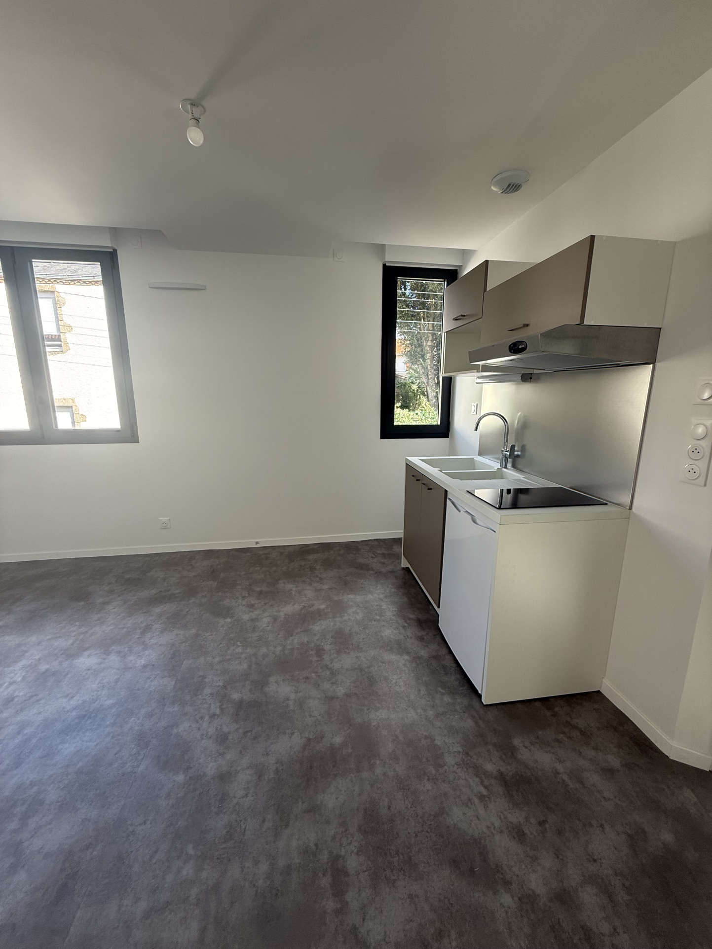 Appartement de type 1, situé au 1er étage, offrant : entrée sur pièce de vie avec coin cuisine aménagé et équipé (plaque de cuisson, hotte, réfrigérateur), salle d'eau avec wc.