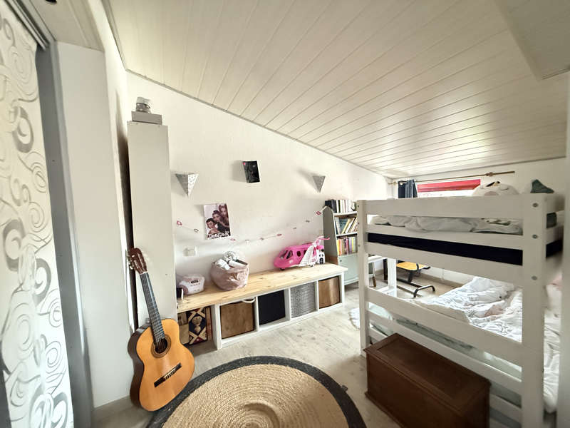 À l’étage, vous profiterez d’une seconde chambre avec dressing ainsi que d’un bureau, idéal pour le télétravail ou un espace polyvalent.