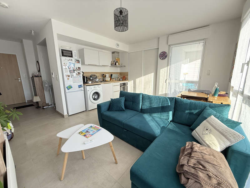 -pièce de vie avec cuisine avec plaques de cuisson, placard avec espace lave linge (22.30 m2)