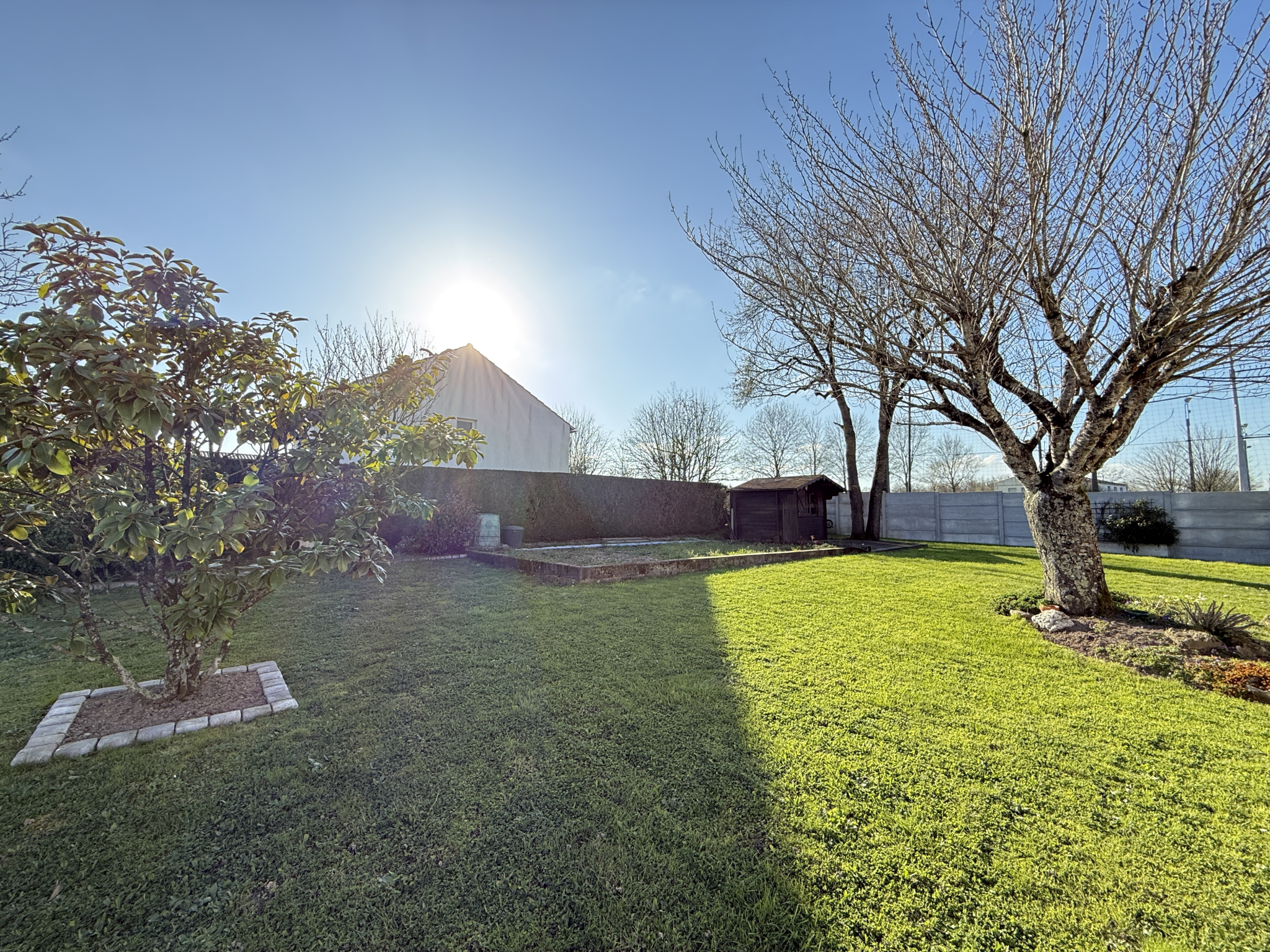 A l'extérieur: belle terrasse sans vis-à-vis, store banne, abri bois, cabane de jardin, le tout, clos de murs