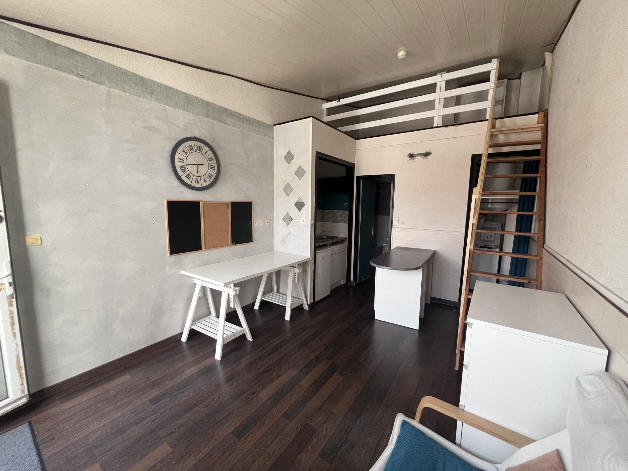 L’appartement se compose d’une pièce de vie, d’un coin kitchenette fonctionnel, ainsi que d’une salle de bain avec WC.