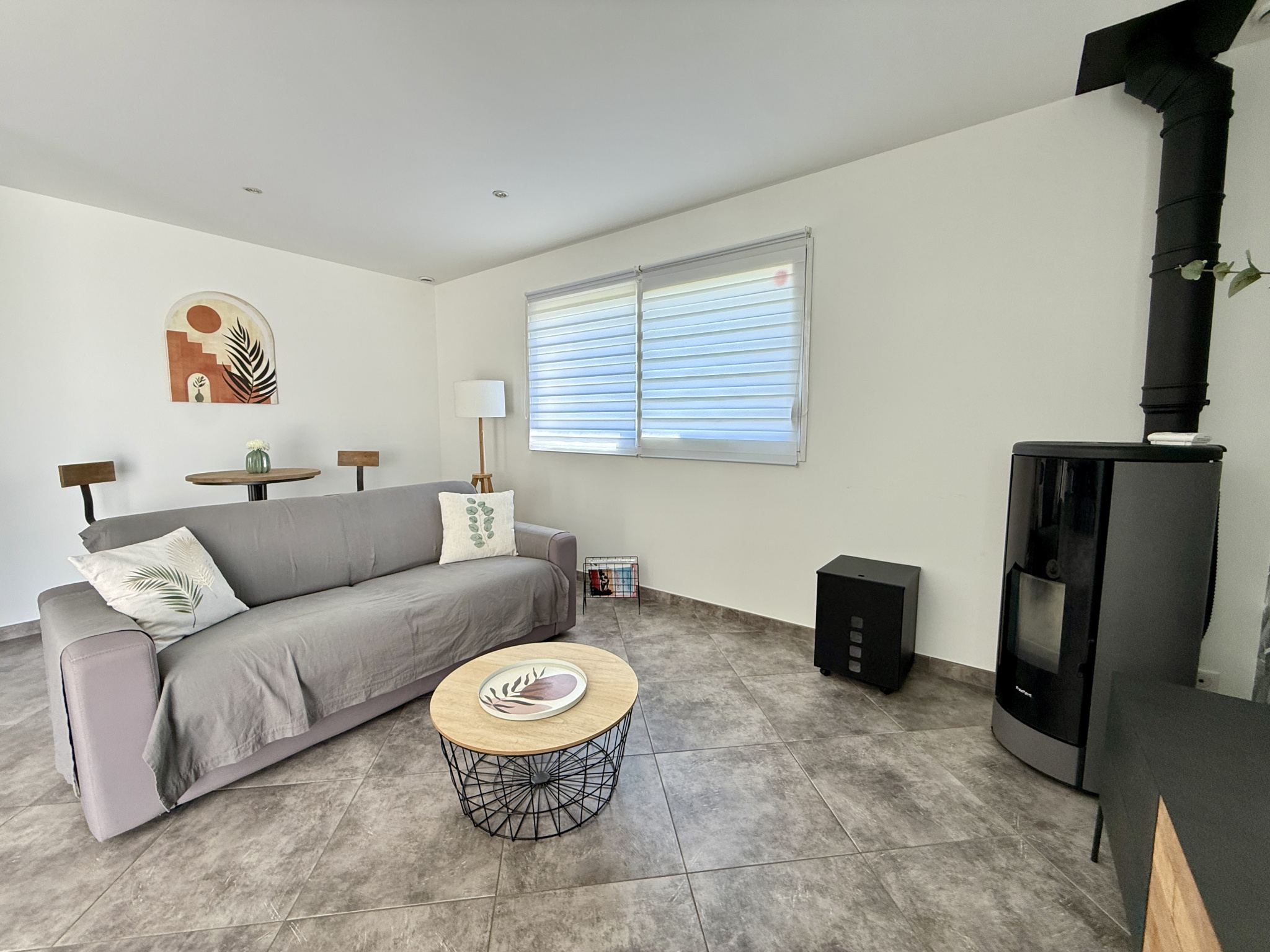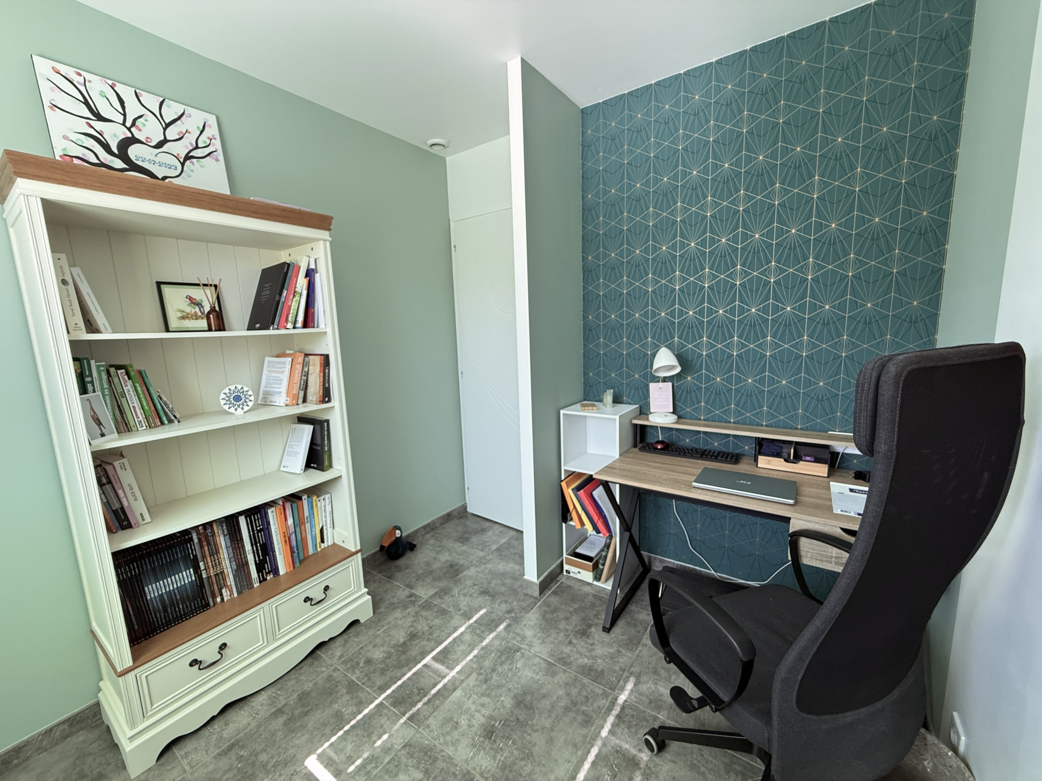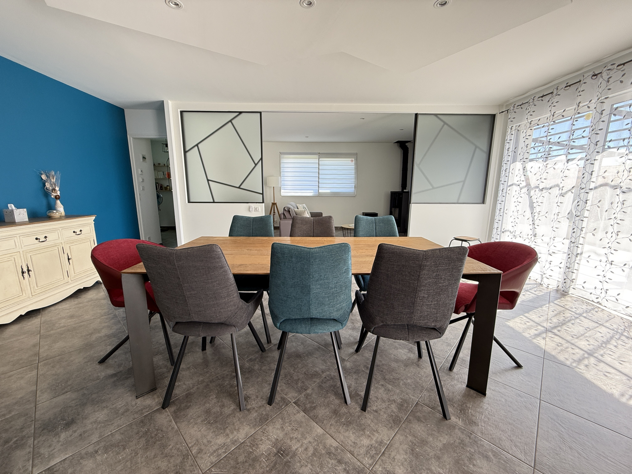 Attenant à la pièce de vie, le salon de 16m2 est aménagé d'un poêle à granulés et de portes à galandage élégamment décorées pour profiter de belles séances de cinéma en famille, et le bureau de 7m2 offre un beau potentiel pour le télétravail. WC indépendant
