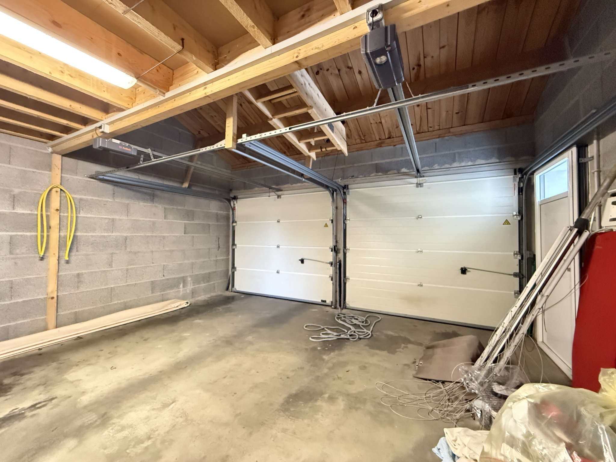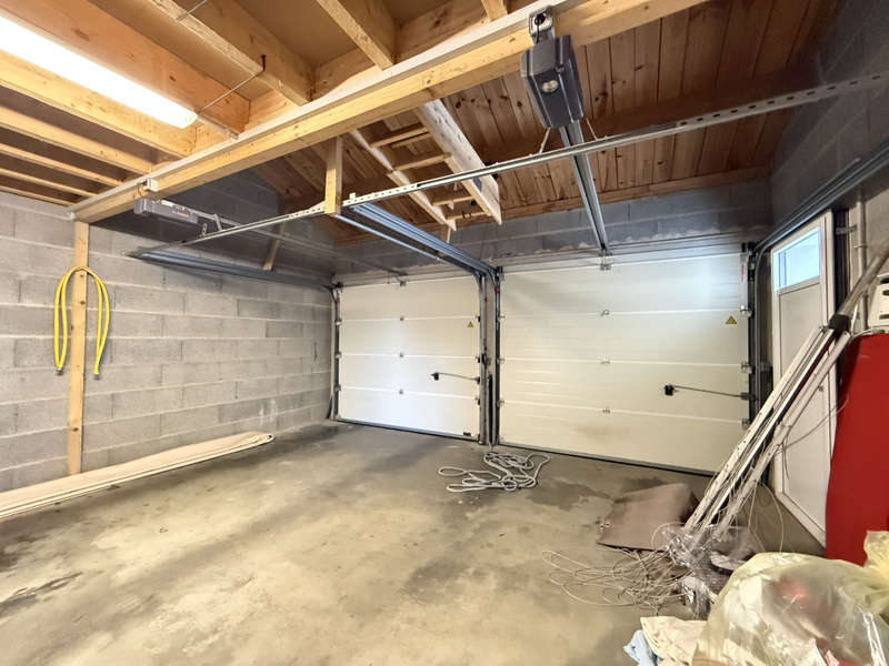 Une lingerie avec évier et accès jardin donne accès au double garage de 35m2 avec grenier et cave