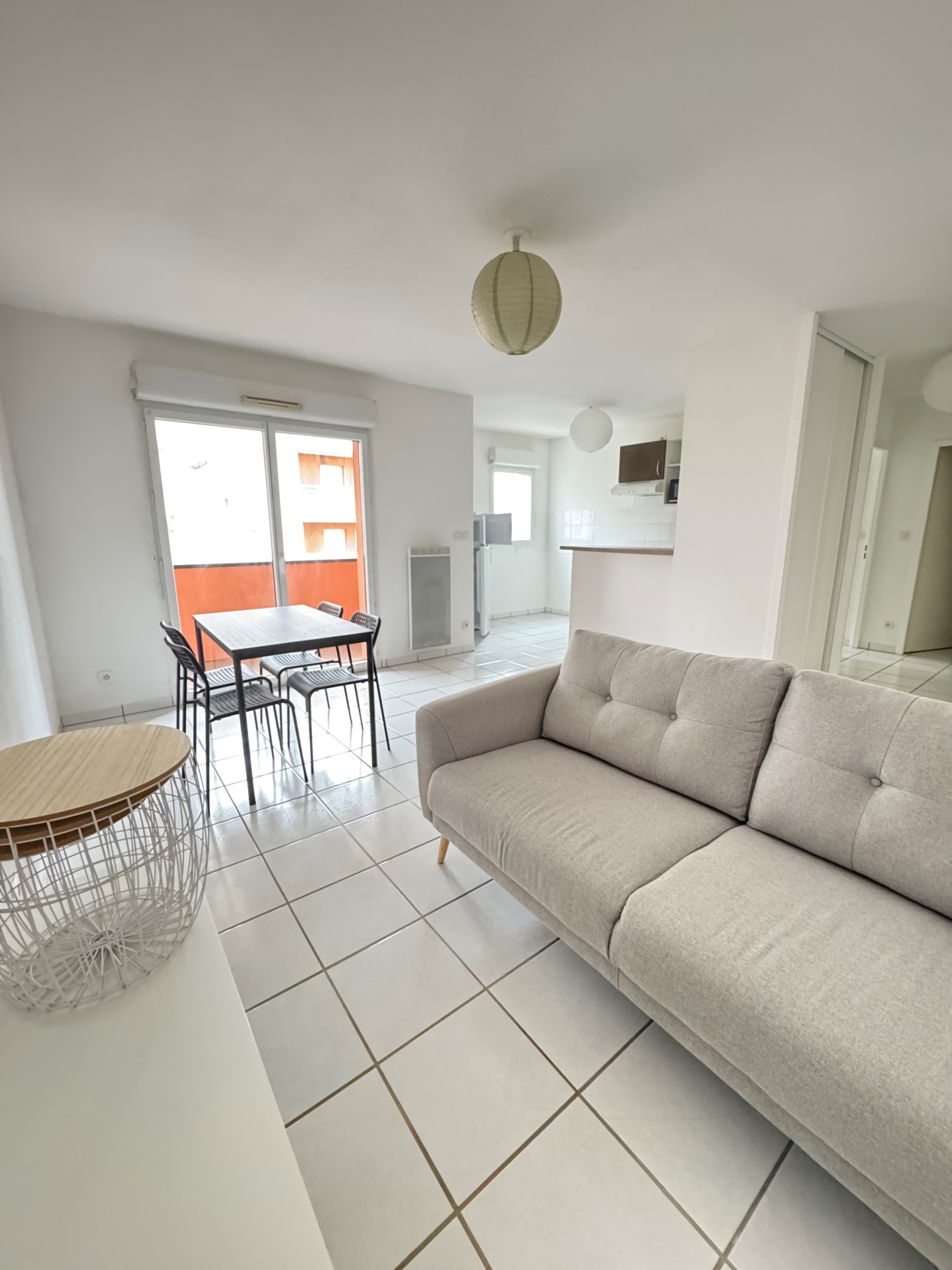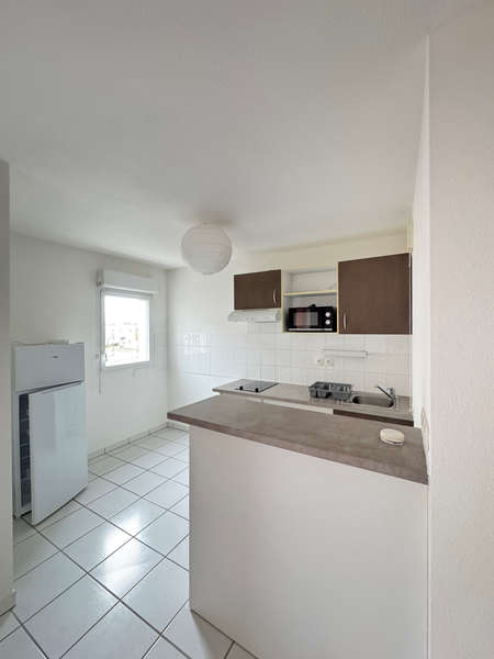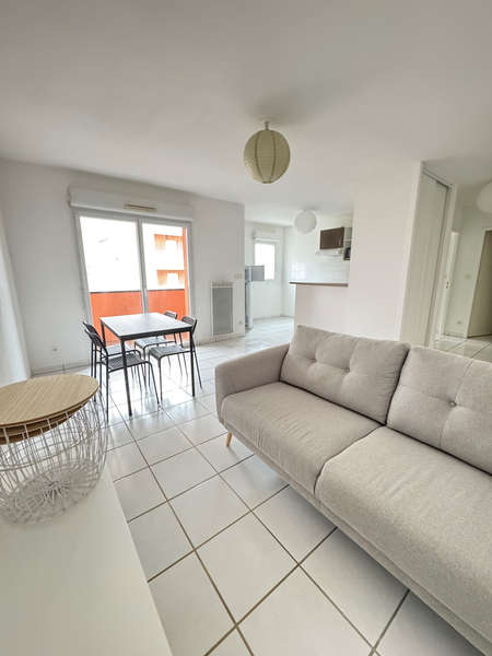 Appartement T2 meublé comprenant hall d'entrée avec placard, séjour ouvrant sur balcon spacieux, cuisine aménagée et équipée ouverte, une chambre, salle de bains,